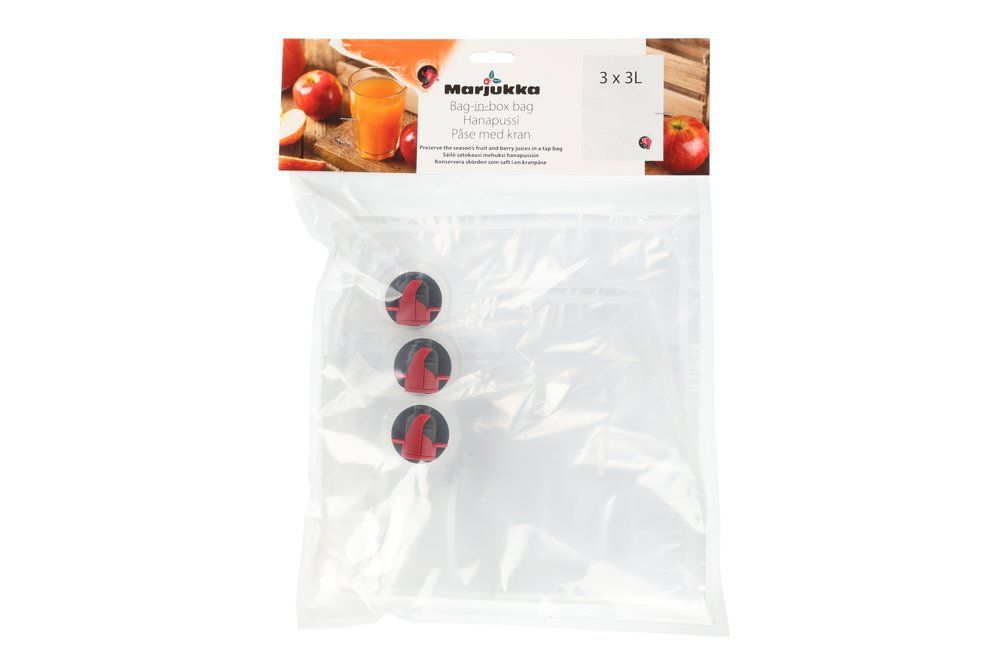 Praktiska tappkranspåsar för att ta tillvara skördens smaker som juice. Fyll påsarna med juice eller hemmagjort vin och förvara dem på ett hygieniskt och platsbesparande sätt – i frys, kyl eller sval förvaring som exempelvis källare.