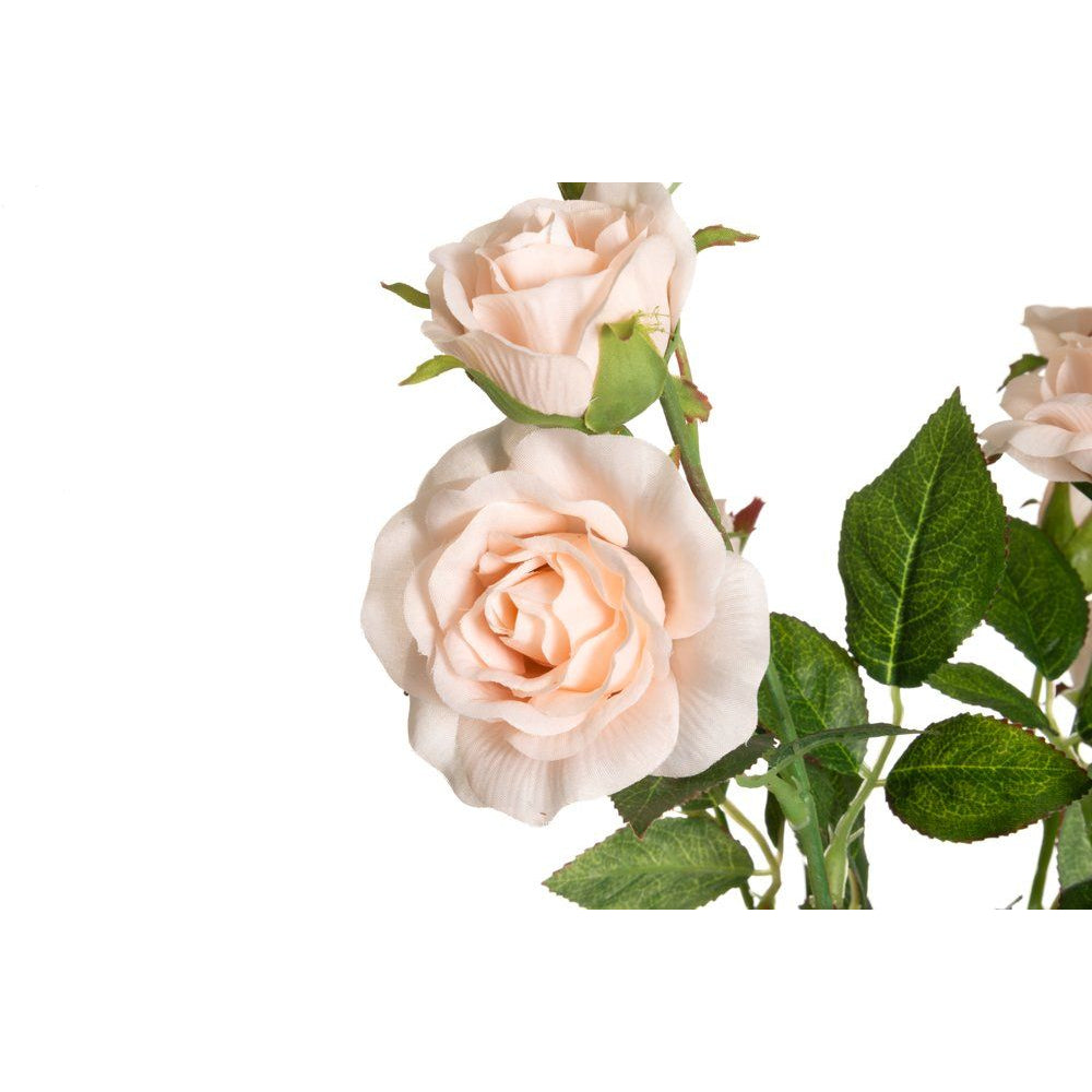 Konstgjord storblommig ros i kruka som är en enkel och dekorativ detalj för balkong, uteplats, trädgård eller terrass. Den champagnefärgade blomman och det naturtrogna utseendet ger en fin känsla av grönska och blomning utan att du behöver tänka på skötsel.