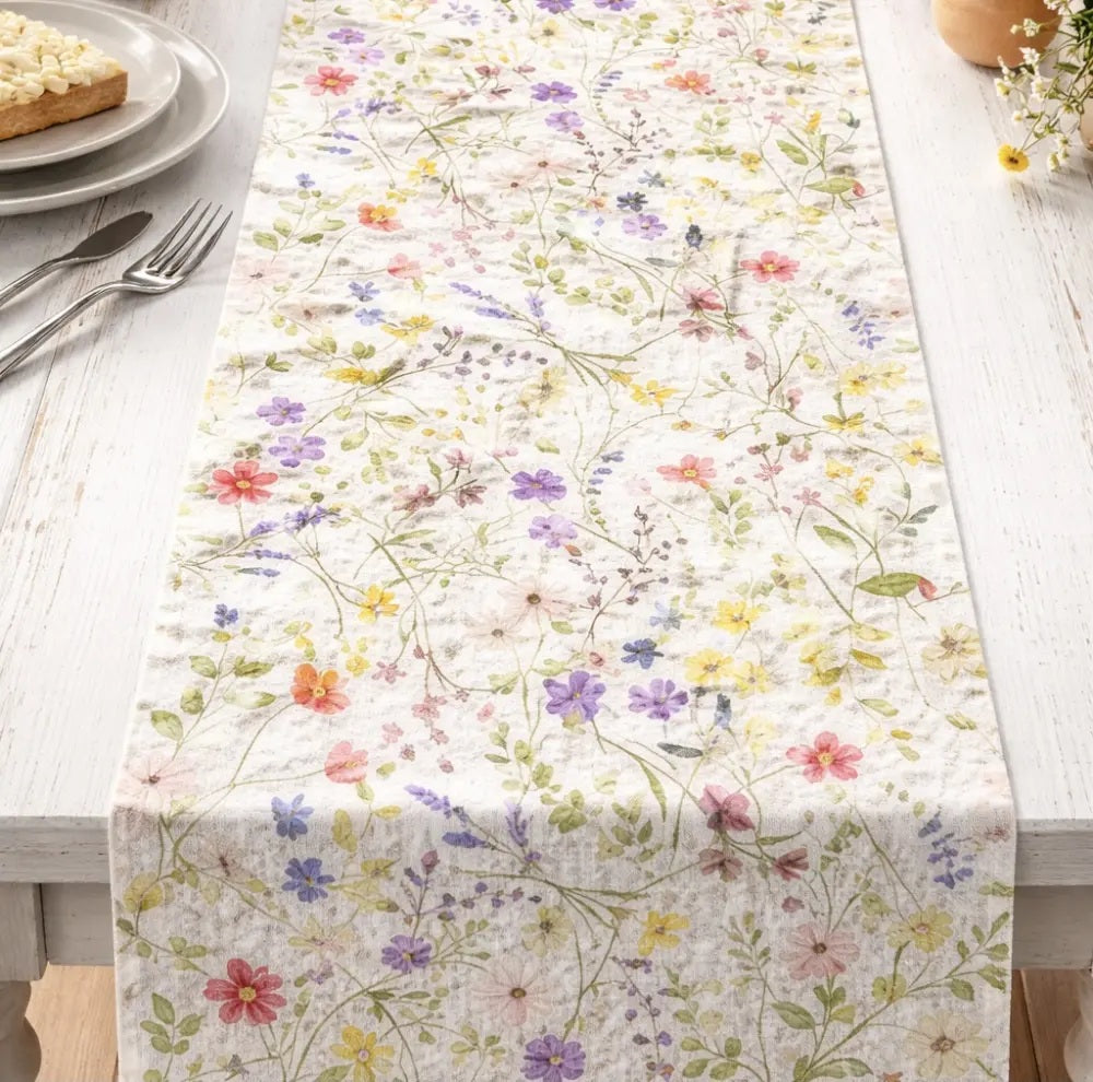 Skapa en somrig och inbjudande dukning med denna löpare i färgglad sommarblommig design. Med sin generösa längd passar den lika bra på långbord och buffébord som på ett vanligt köksbord – perfekt när du vill sätta tonen för studentfirande, midsommar eller sommarfest.