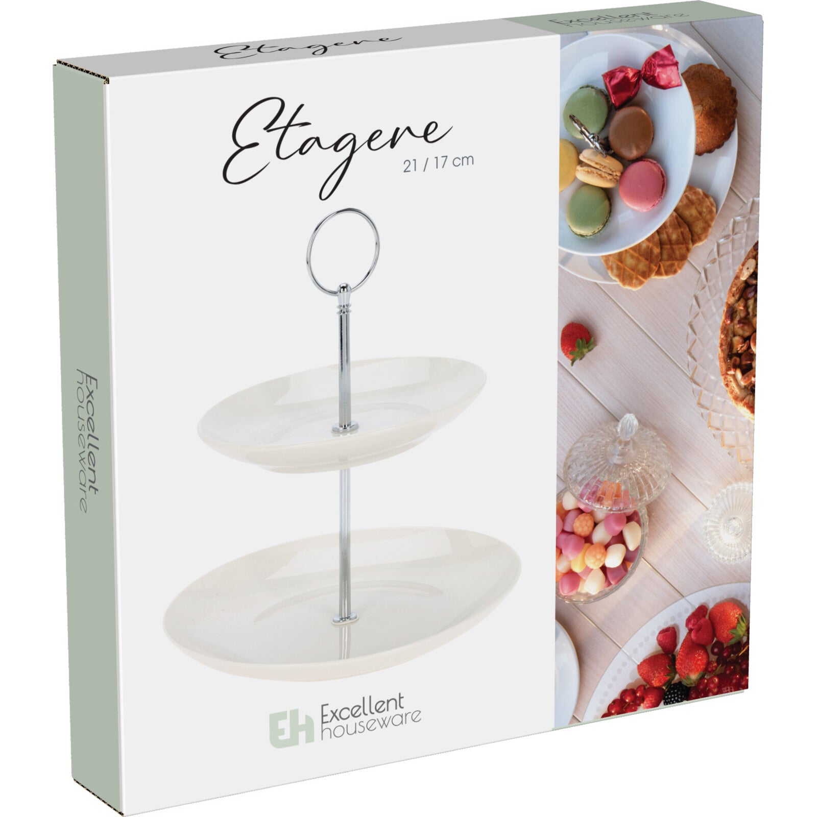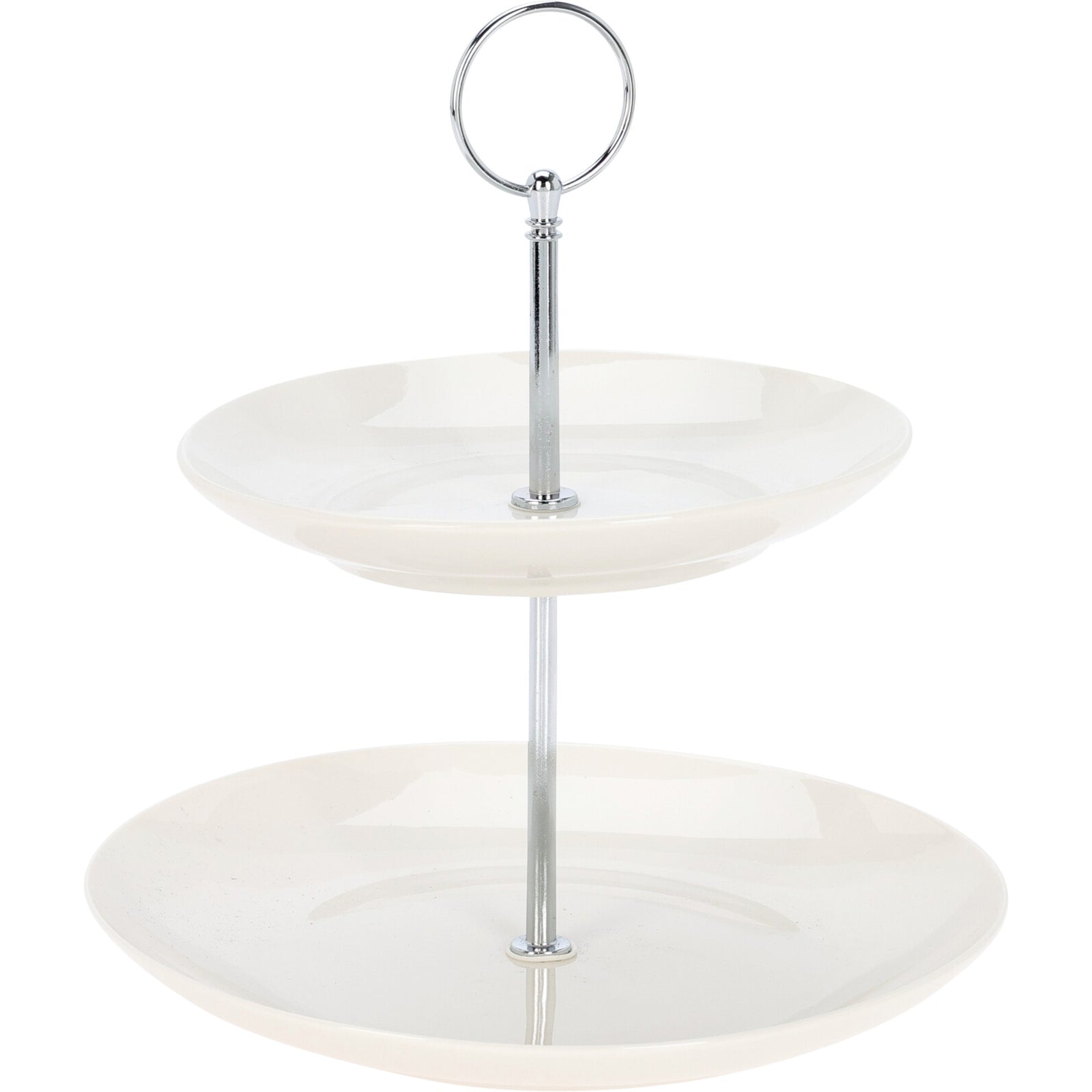 Serveringsfatet har två våningar med olika storlek som ger en fin presentation och gör det lätt att servera flera olika saker samtidigt. Den klassiska designen i porslin gör att det passar in i många olika dukningar.