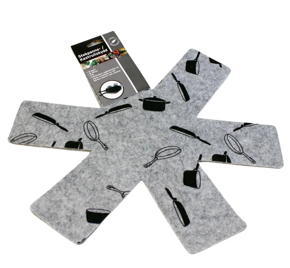 Stekpanneskydd i filtmaterial, avsett att placeras mellan staplade stekpannor för att minska risken för repor och märken. Passar när stekpannor förvaras i stapel och ytorna behöver skyddas.